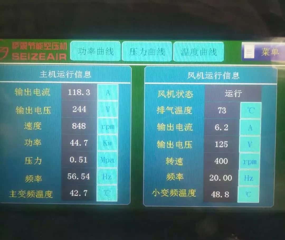 空壓機(jī)好不好,看看運(yùn)行數(shù)據(jù)就知道。薩震空壓機(jī)產(chǎn)氣量多,壓力可以定制,用多少給多少,沒有絲毫浪費(fèi),使用薩震空壓機(jī)的這段時(shí)間,廠里效益高了,更有市場(chǎng)競(jìng)爭(zhēng)力了,你說(shuō)能不高興么!