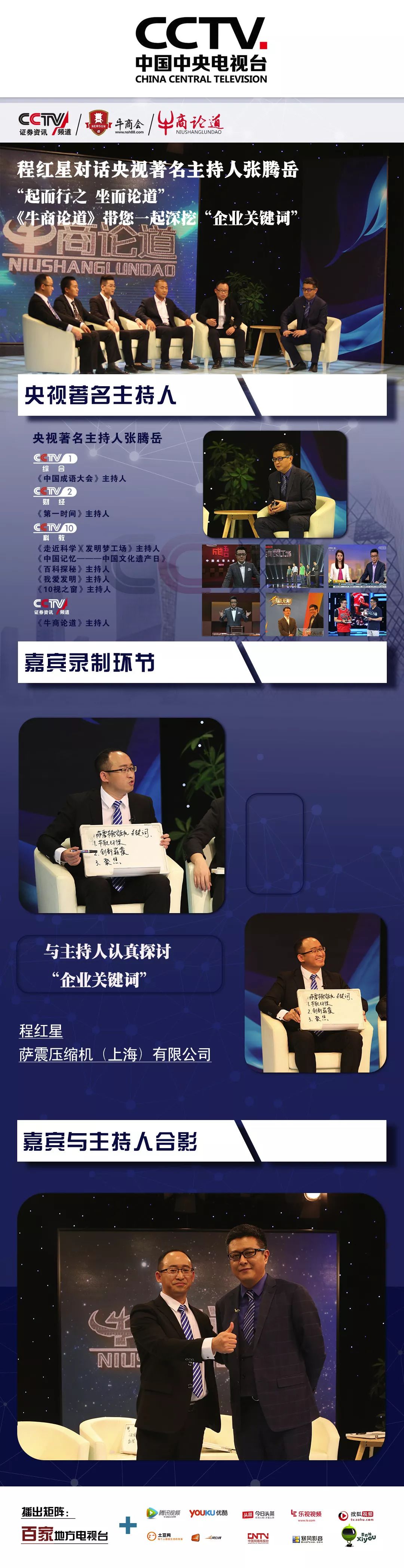 薩震壓縮機(jī)(上海)有限公司總經(jīng)理程紅星,作為第七屆上海十大牛商受邀參加央視CCTV《牛商論道》節(jié)目,與來自全國(guó)的牛商大咖,央視著名主持人張騰岳一起坐而論道。