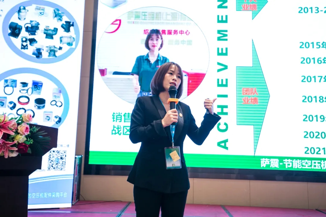 緊接著,各廠商依次向參會(huì)嘉賓分享各自的技術(shù)和產(chǎn)品,薩震壓縮機(jī)(上海)有限公司的南區(qū)副總?cè)A芬珍在PPT中,從企業(yè)文化、團(tuán)隊(duì)管理、產(chǎn)品特性等方面以飽滿的精神做出了精彩的分享。