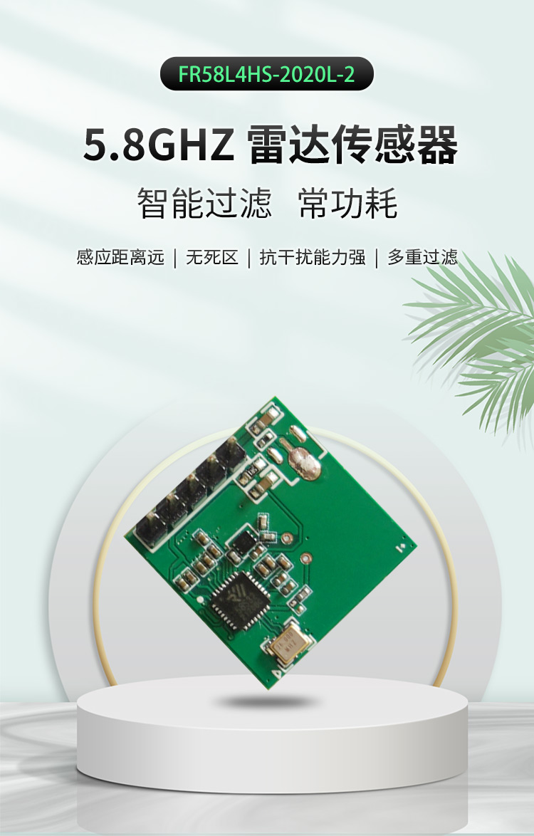 FR58L4HS-2020L 是飛睿智能推出的高性能 5.8G 雷達傳感器,雷達模塊利用多普勒原理,通過天線發(fā)射高頻電磁波并接收初期反射波,以此判斷覆蓋范圍內(nèi)物體的移動,給出相應電信號。模塊尺寸 20*20MM 該芯片集成了 5.8G 微波電路、中頻放大電路以及信號處理器,集成度高且生產(chǎn)一致性好,模塊內(nèi)置 32 位 MCU 和收發(fā)天線,大大提高了傳感器的感應性能。雷達模塊感應距離遠、角度廣、無死區(qū)、透鏡和透鏡老化問題不受溫度、濕度、氣流、灰塵、噪聲、亮暗等影響。模塊內(nèi)植入過濾雨水樹葉算法,能有效過濾掉雨水樹葉的誤觸發(fā),廣泛應用于智慧照明、智能門鎖、智慧安防、智慧家電等多個領(lǐng)域。